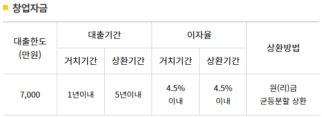 - 창업 초기 운영자금 및 시설자금: 최대 7,000만원