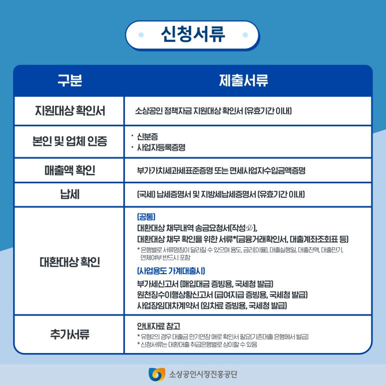 - 온라인 신청: 소상공인정책자금 누리집을 통해 온라인으로 신청합니다. 이때, 지원 대상 확인서를 발급받아야 하며, 이 확인서는 대환대출 신청의 필수 요건입니다.