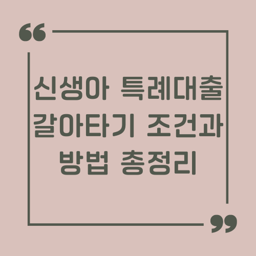 신생아 특례대출을 기존 대출에서 갈아타기 위해서는 몇 가지 조건을 충족해야 합니다.